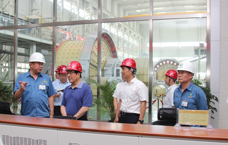 林省長(zhǎng)一行先后深入科技中心、磨浮車間、主平硐口進(jìn)行調(diào)研。在科技中心,林省長(zhǎng)查看了金徽股份巖心資料館、生產(chǎn)調(diào)度指揮系統(tǒng)和安全監(jiān)測(cè)監(jiān)控系統(tǒng),觀看了金徽股份宣傳片及《魅力隴南》專題片。在磨浮車間,林省長(zhǎng)調(diào)研了生產(chǎn)情況,察看了選礦自動(dòng)化控制全過(guò)程,聽(tīng)取了耿董事長(zhǎng)關(guān)于選礦采用“一粗三精兩次掃選”、先鉛后鋅浮選方法及其優(yōu)點(diǎn)的具體匯報(bào)。在1190主平硐口,林省長(zhǎng)觀看了已經(jīng)投入生產(chǎn)的無(wú)人駕駛牽引機(jī)車,聽(tīng)取了耿董事長(zhǎng)關(guān)于采礦運(yùn)輸系統(tǒng)和已經(jīng)投入使用的井下人員定位、監(jiān)測(cè)監(jiān)控、通訊聯(lián)絡(luò)、緊急避險(xiǎn)等六大系統(tǒng)的全面匯報(bào)。同時(shí),耿董事長(zhǎng)還就金徽股份為一線工人免費(fèi)提供的住宿、安檢、更衣、搓澡等關(guān)愛(ài)舉措做了進(jìn)一步匯報(bào)。